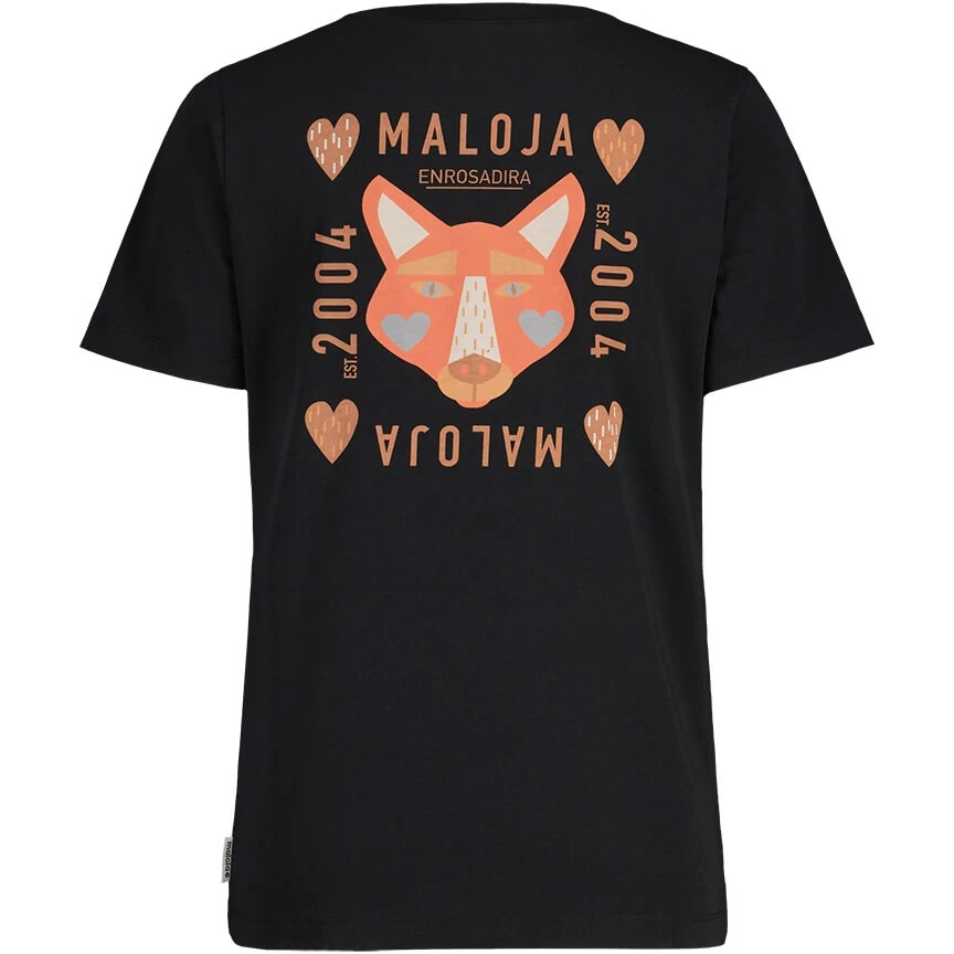 Basic organic cotton T-shirt with large fox print on the back and Maloja lettering on the chest.