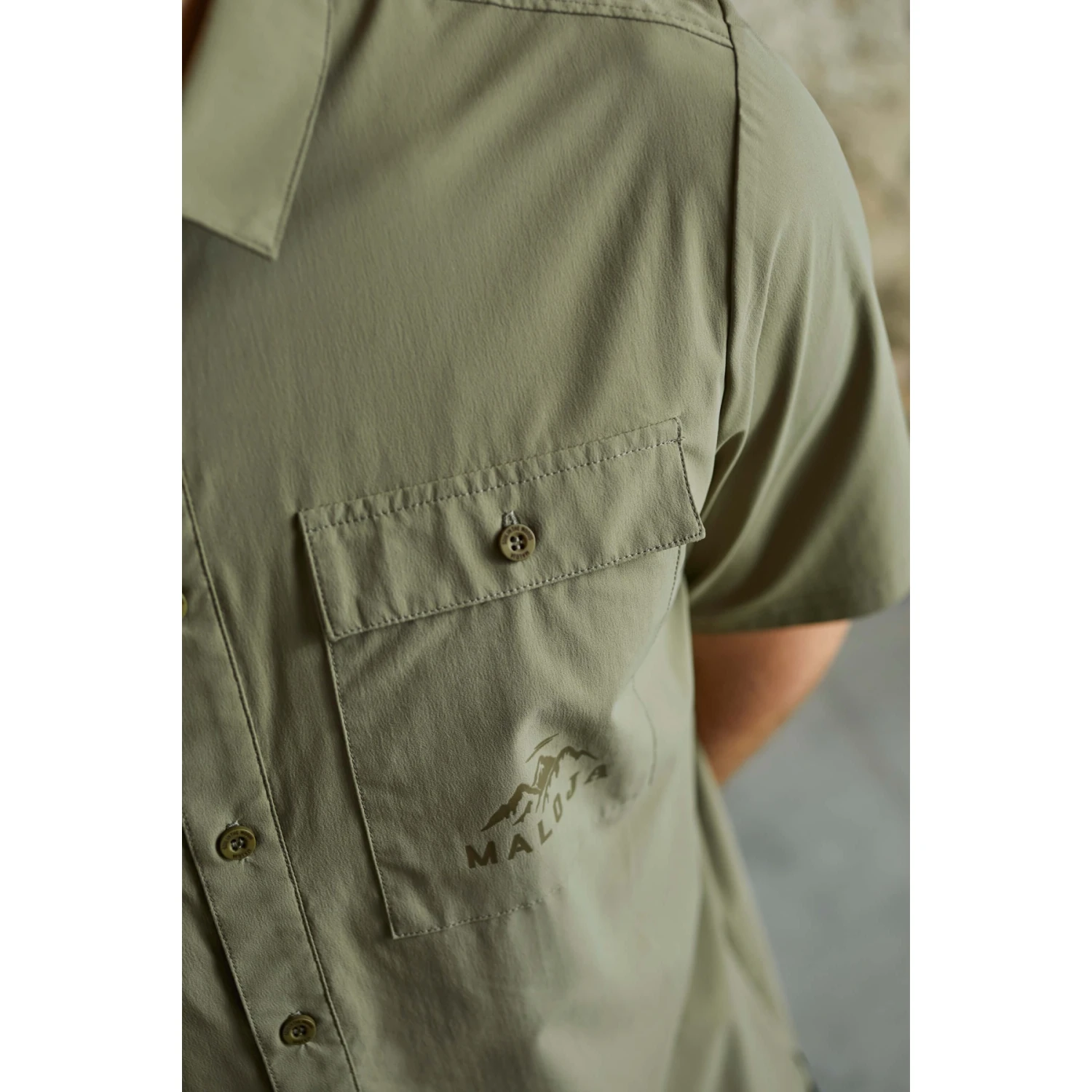 A classic half-sleeved shirt with a narrow collar and full-length button placket, the technical material ensures high breathability and dries quickly. Printed breast pocket with button closure, Maloja patch on the back.