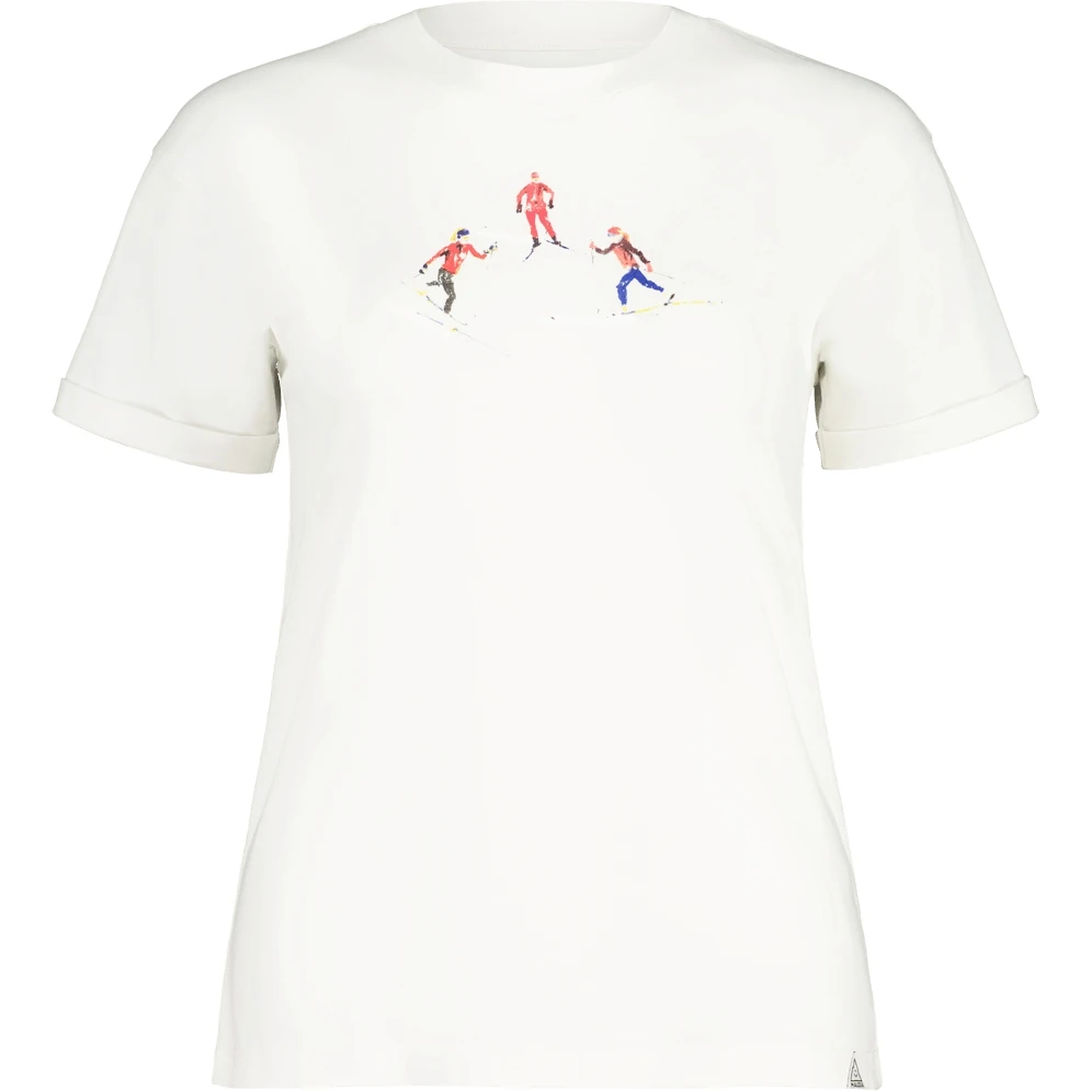 Basic T-shirt with rolled-up sleeves in organic cotton, decorated with three hand-drawn 3D prints: ski touring, freeride or cross-country skiing.