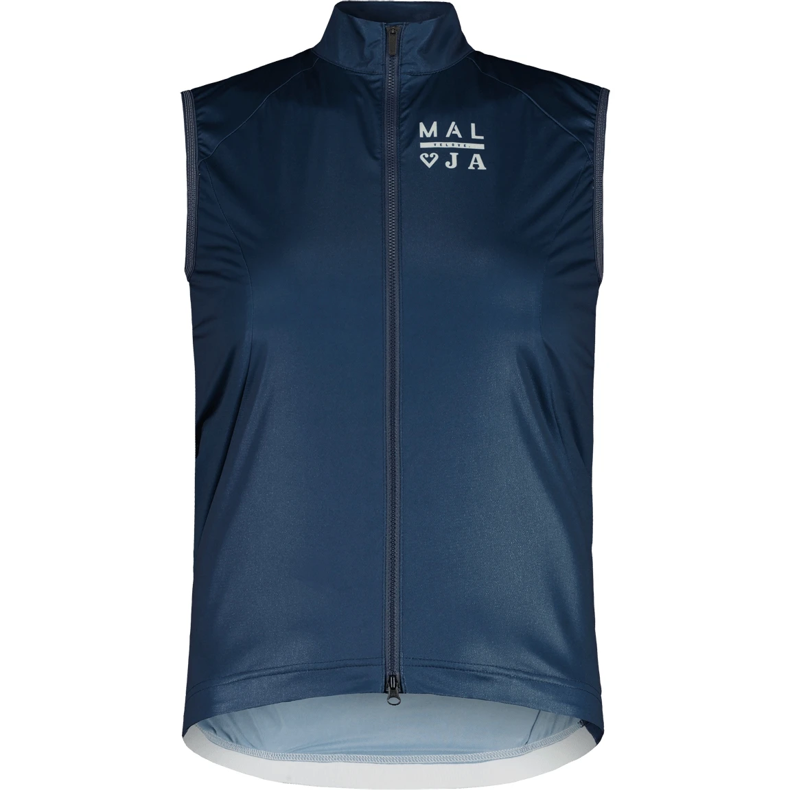Anatomically cut, packable small with wind block front. The upper part of the back made of mesh provides effective ventilation. The one-handed two-way zipper allows the vest to be opened from both sides during the ride for better ventilation or to reach the jersey pockets underneath. With its simple design and the square Maloja lettering on the back and chest, the vest is easy to combine.